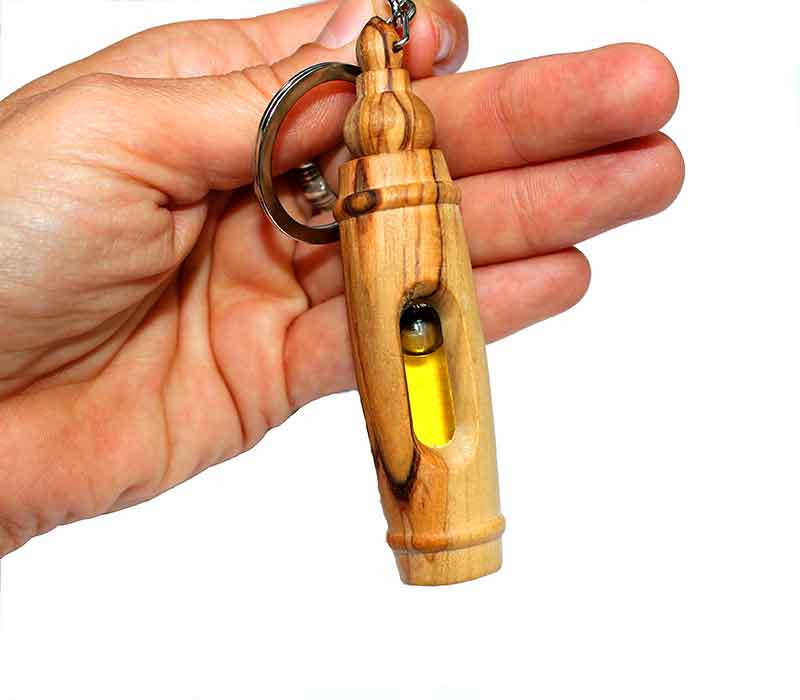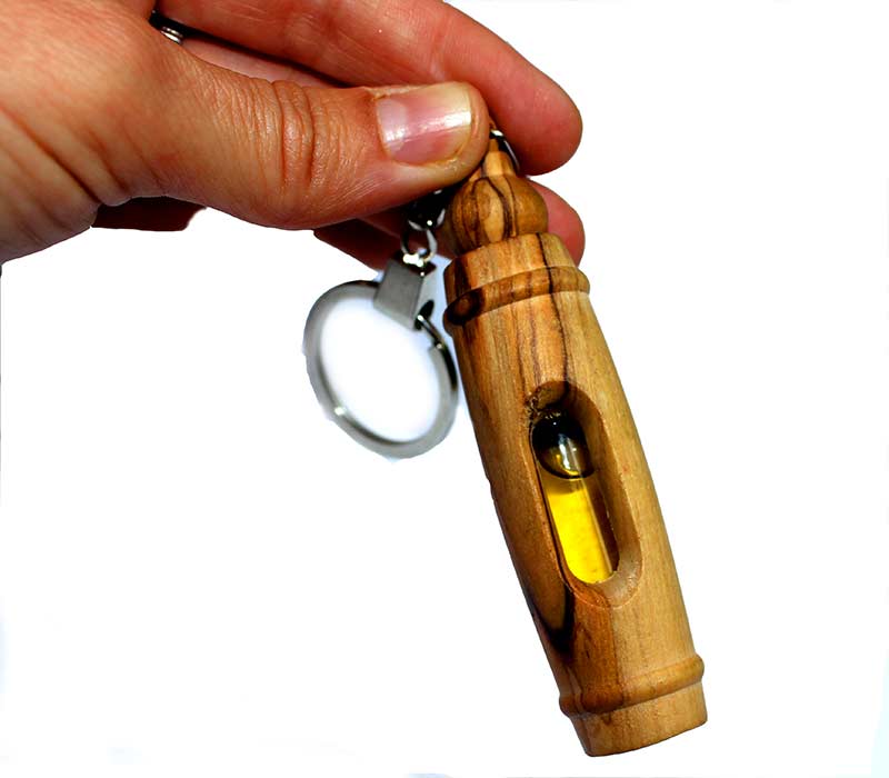 Unique Olive wood Key chain with olive oil. Made in Bethlehem.