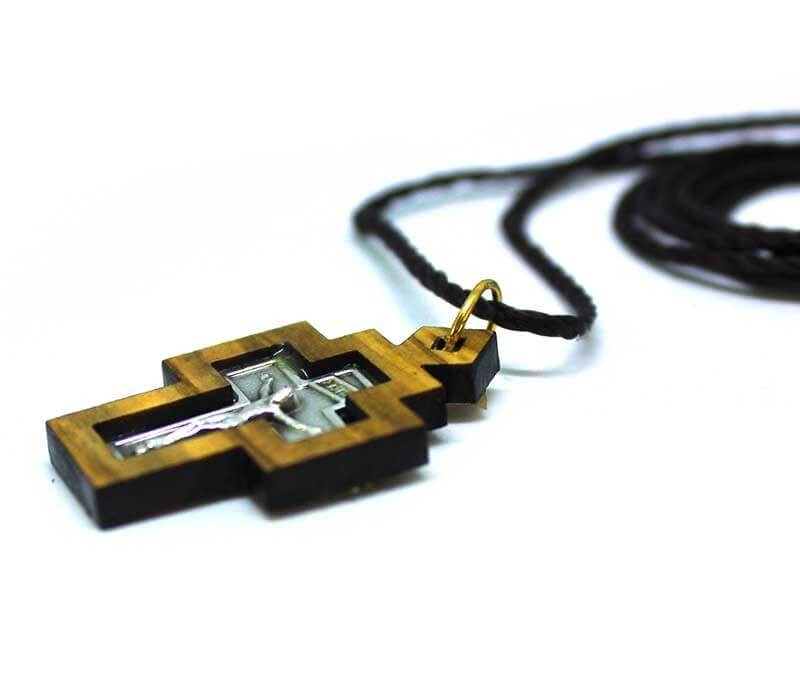 High quality olive wood pendant , 3 cm (1.2 inches), black cotton string, made in Bethlehem, Free shipping. Certificate of origin attached.