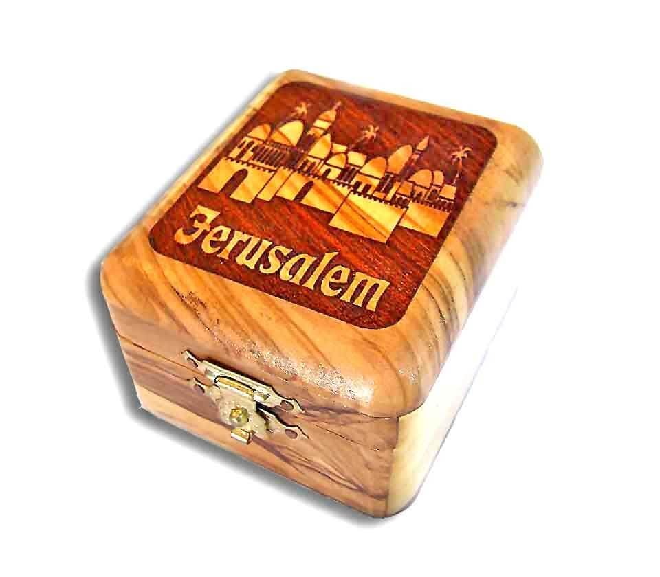 Olive wood rosary box from Bethlehem, hand made - sizes: 7 x 6 x 4 c'm