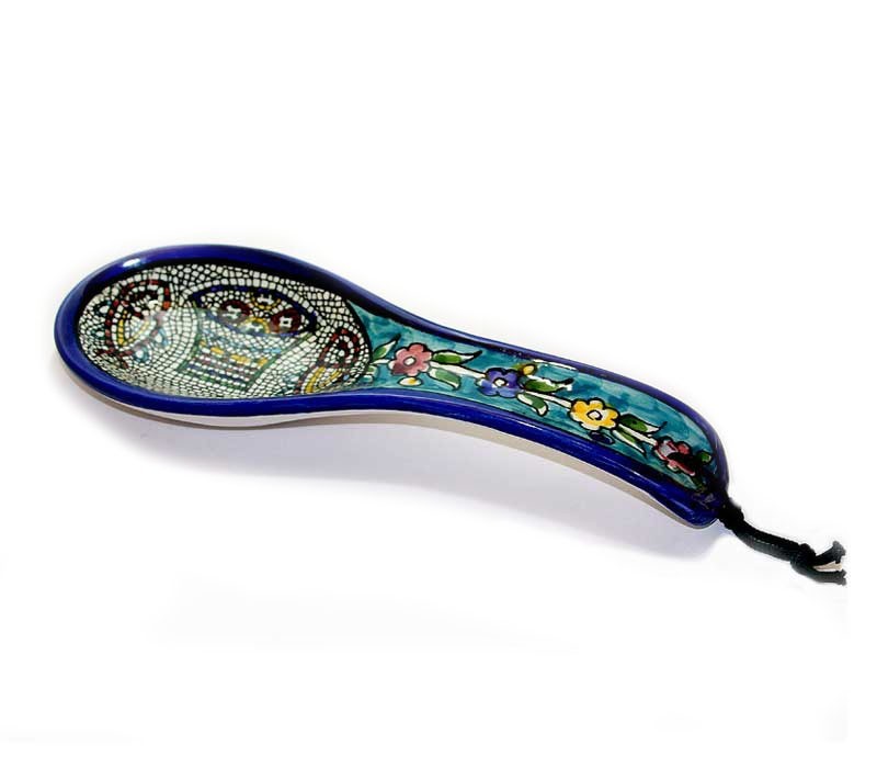 Armenian Ceramic serving spoon. Size: 9.5 inches, 24 cm. Hand made in
