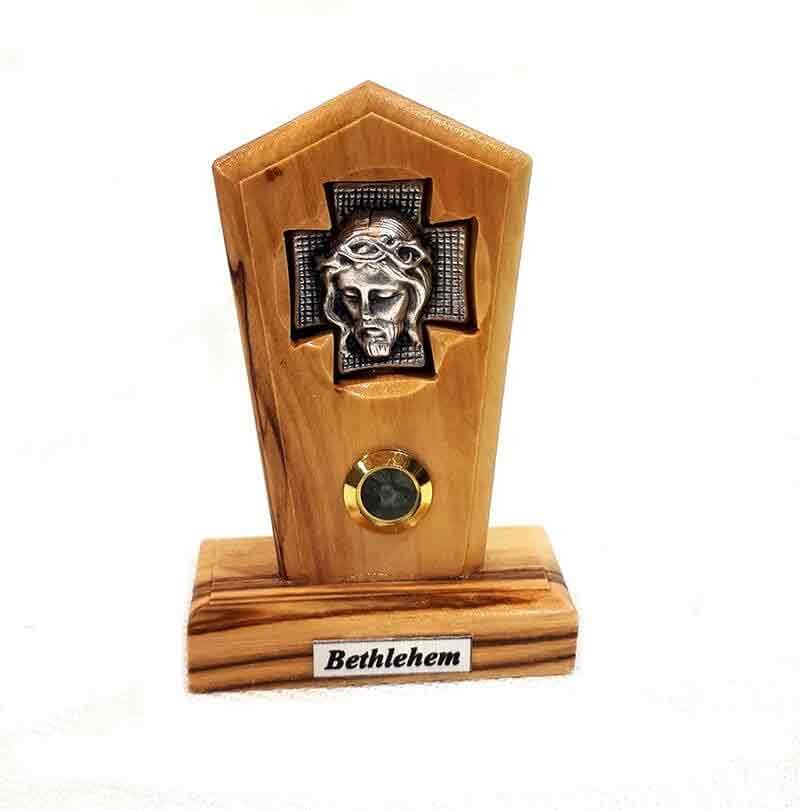 Special : 3 Icons- Jesus Face, The Holy Family, and Holy Mother and Baby Jesus. Hand made from Bethlehem - silver plated and olive wood on olive wood base,
