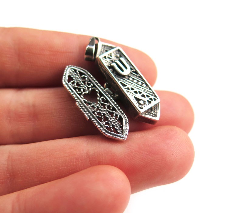 Mezuzah pendant . Made from 925 sterling silver. Size 1 inch, 2.5 cm.