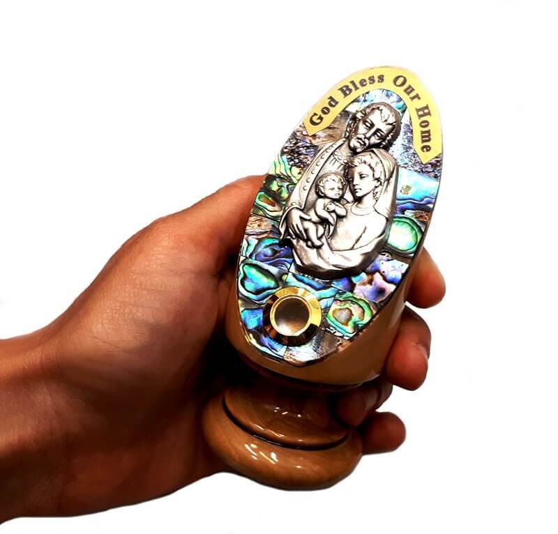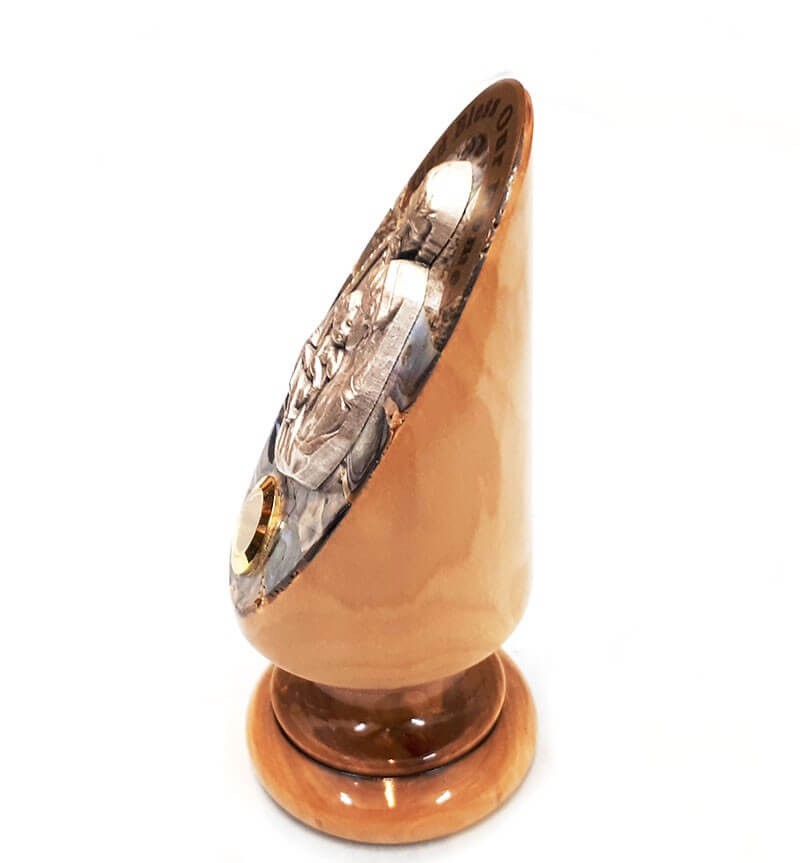 Special : hand made from Bethlehem - made from Mother of pearl on an olive wood base, Size; 4.5 inches, 11 cm.