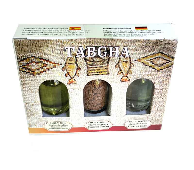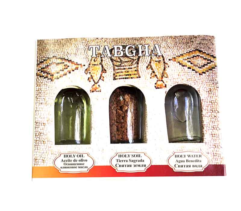 Jordan River water, Olive oil, and soil from Jerusalem,