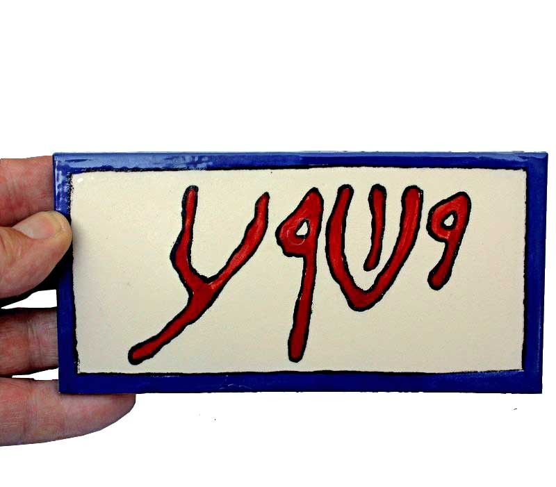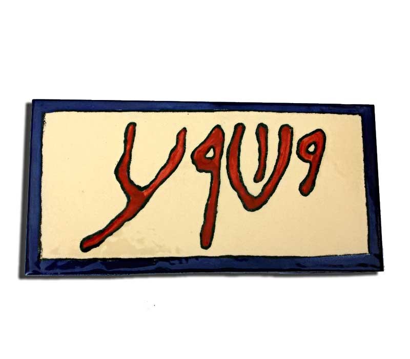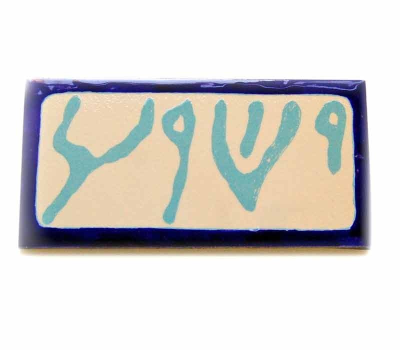 Original- hand made tile, copy of an ancient hebrew text "Yeshua " made by the Armenian artist George Sanduiriny, 15 x 7 cm (6 x 3 inches). Cork cover on the back side, hanging hook. Free Shipping . Available also in different color: